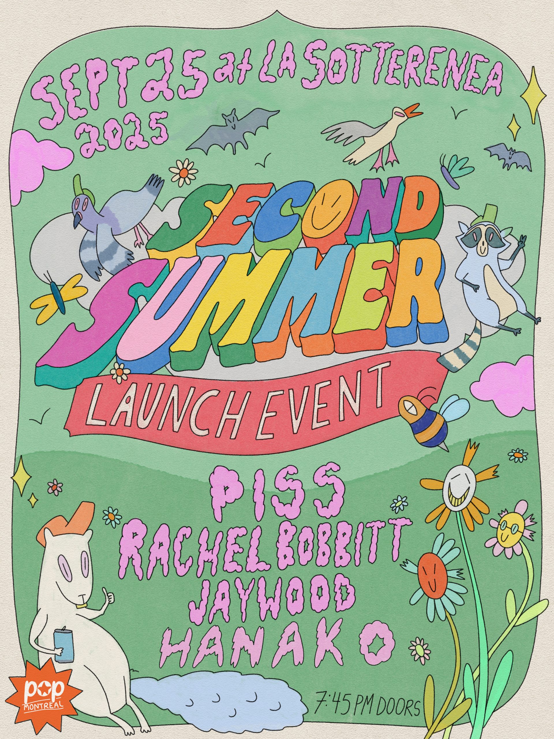 Join us on September 25th at La Sotterenea in Montreal for the Second Summer Launch Party, a night of raw sound and underground spirit. Featuring noise-punk disruptors Piss, introspective indie from Rachel Bobbitt, groove-driven JayWood, and Hanako. Montreal’s scene comes alive here. Don’t miss the wave!